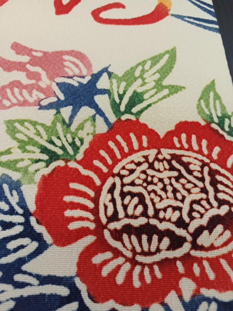 型染めでは、型紙を使って模様を染めるため、細かい線や複雑な模様が正確に表現されます。