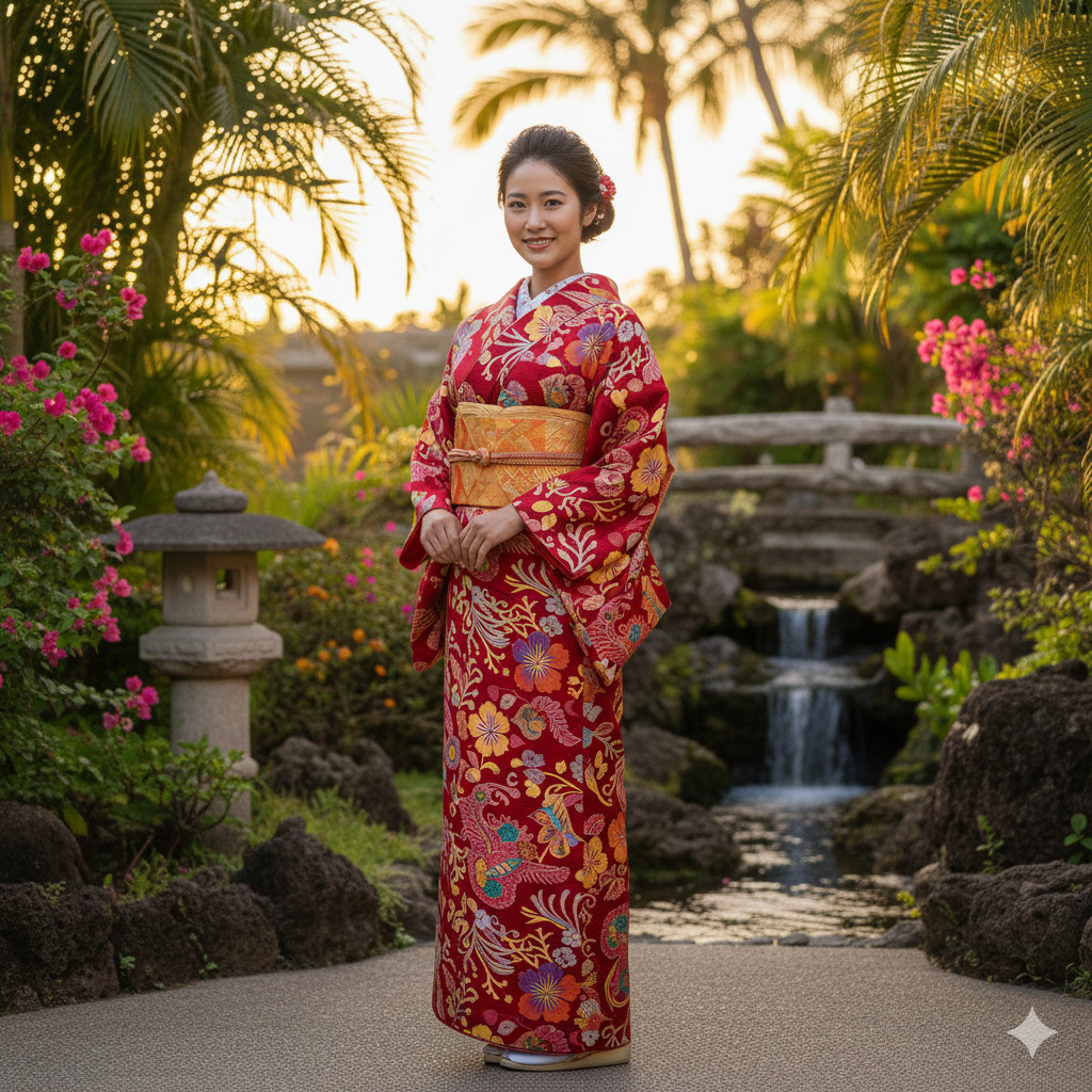 成人式や結婚式といった人生の節目となるイベントで、紅型着物を選ぶ人も増えています。特に沖縄出身者にとっては、紅型を着ることが故郷の文化を身にまとう象徴的な意味を持ちます。
