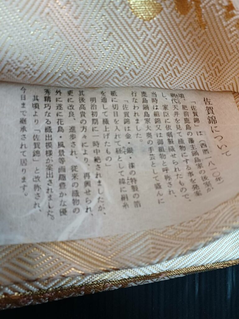 その後、鍋島家の庇護のもと、佐賀錦は高級な織物として発展し、武士や富裕層の間で広く使用されました。