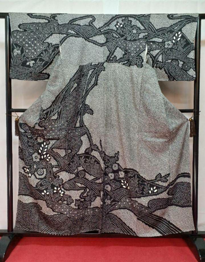 室町時代に生まれた技法で、絞りと手描きを組み合わせた華やかな着物。現在は復刻版が作られている。