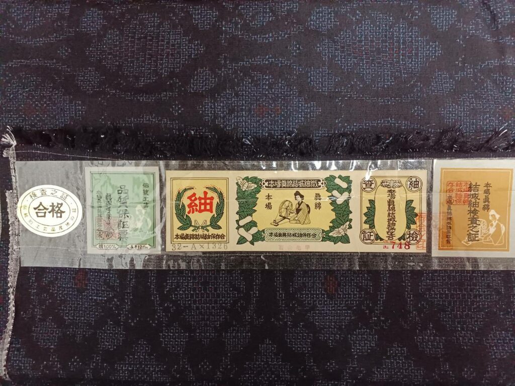 本場結城紬には、産地証明書やタグが付けられていることが多く、これが本物の証として信頼されています。